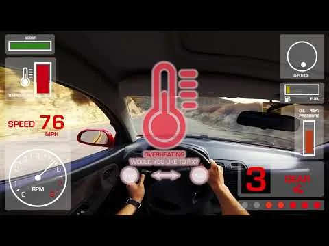 The Virtual Dashboard UX/UI is a conceptual dashboard projected inside race car driver helmets displaying vital car information during a race. The user is shown the most vital information on the edges, away from the driver's view of the road and just a quick glance away. Important warnings and alerts are shown in the center view until the driver interacts with the notification or disappears.